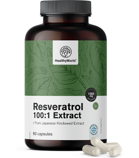Resveratrolo – un polifenolo naturale estratto dalla radice giapponese dello stilbene. Il resveratrolo è un composto naturale che appartiene al gruppo dei polifenoli, più precisamente agli stilbeni. Si trova soprattutto in varie piante, dove agisce come meccanismo di difesa contro vari fattori o influssi ambientali. Le principali fonti di resveratrolo sono: l'uva, soprattutto le varietà scure, il vino rosso, ma anche alcune bacche, arachidi, cacao e il poligono del Giappone. Le capsule Resveratrolo del marchio HealthyWorld contengono resveratrolo estratto dalla radice poligono del Giappone ( Polygonum cuspidatum). La dose giornaliera contiene 1020 mg di estratto, di cui il 98% è resveratrolo, quindi 1000 mg. Capsule con aggiunta di pepe nero per un maggiore assorbimento. Oltre al resveratrolo, alle capsule è stato aggiunto un estratto secco di frutti di pepe nero ( Piper nigrum), titolato al 95% di piperina. La piperina contribuisce a una maggiore efficacia, poiché aumenta l'assorbimento - il passaggio delle sostanze attive dal sistema digestivo al flusso sanguigno, da dove il corpo può utilizzarle. Assicurati un rinforzo quotidiano del tuo corpo con il resveratrolo naturale. Le capsule di Resveratrolo 1000 mg – estratto 100:1 ti entusiasmeranno per: l'alto dosaggio giornaliero – ben 1000 mg di resveratrolo (2 capsule), la presenza di resveratrolo estremamente puro e naturale, estratto dal poligono del Giappone, l'aggiunta di piperina, la quale garantisce un'assorbimento più rapido e efficace. Il prodotto è un integratore alimentare. ...