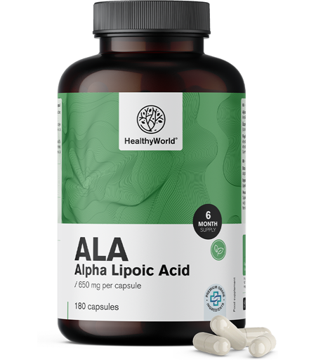 HealthyWorld® ALA – acido alfa lipoico 650 mg, 180 capsule