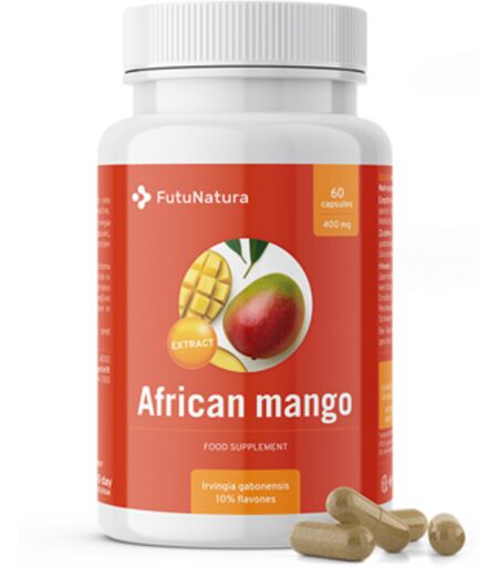 Mango africano – efficace estratto di semi di mango. Mango africano ( Irvingia gabonensis), chiamato anche mango selvatico, è una pianta ossia un albero autoctono della foresta pluviale dell'Africa – diffuso principalmente in alcune parti del Camerun, del Congo e della Nigeria. I frutti del mango africano sono drupacei – mango, estremamente succosi e gustosi. Il frutto fresco è molto apprezzato in cucina, soprattutto nella preparazione dei dolci. Il nocciolo con il seme nascosto all'interno del mango è anche commestibile e pienò di principi attivi. Le capsule Mango africano del marchio FutuNatura contengono l’estratto di semi di questo eccezionale mango africano, che sono molto apprezzati e versatili e contengono anche flavoni naturali. Semi di mango molto efficaci con flavoni naturali. I vantaggi delle capsule Mango africano – estratto: la dose giornaliera contiene ben 400 mg di estratto di semi di mango africano, è estremamente semplice da usare e viene facilmente aggiunto nella routine mattutina – prima di fare la colazione prendi una capsula, ogni capsula contiene anche 40 mg di flavoni naturali, la confezione è sufficiente per ben 2 mesi di uso regolare. Le capsule con principi attivi naturali di mango africano. Il prodotto è un integratore alimentare. ...