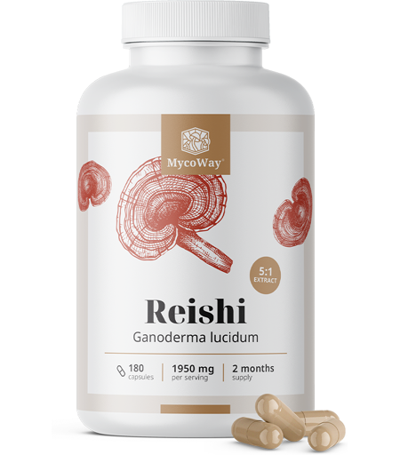 Reishi – il "fungo miracoloso" dall'Asia che tutti dovrebbero conoscere. Il reishi, ganoderma o il ling zhi in cinese è un tipo di fungo legnoso (in latino Ganoderma lucidum). Cresce nelle zone umide dell'Asia, inclusi Cina, Giappone e Corea, ed è riconoscibile per il cappello lucente con l'aspetto caratteristico del legno nei colori rosso, marrone o nero. Questo fungo commestibile è estremamente apprezzato nella cucina cinese e giapponese, ma ha anche un posto speciale nella tradizione alternativa popolare, poiché da esso si ricavano estratti, tè, tinture e altri preparati benefici. A causa del suo valore e dei suoi effetti benefici, un tempo il suo utilizzo era riservato solo alla nobiltà – veniva addirittura chiamato "fungo miracoloso" o "fungo della longevità". Si credeva infatti che consumare il reishi portasse a una vita più lunga e a un migliore benessere, quindi veniva spesso utilizzato in rituali sacri e come regalo per gli imperatori. Un supporto naturale per rafforzare l'immunità e la circolazione sanguigna. Oggi però tutti possiamo godere di questo fungo, poiché è diventato disponibile in tutto il mondo. Ma non sono cambiati i suoi effetti positivi sul nostro corpo, poiché contribuisce: a rafforzare la resistenza naturale, a mantenere la circolazione sanguigna. Con la dose giornaliera ti assicuri ben 1950 mg di reishi 5:1. Dal marchio MycoWay® hanno sviluppato un prodotto a base di reishi che fornisce ben 1950 mg di estratto di questo fungo in un rapporto 5:1, equivalente a 9750 mg di fungo. Il prodotto è un integratore alimentare. ...