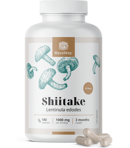 Shiitake – estratto di fungo per un supporto e protezione corporea versatili. Lo shiitake (Lentinula edodes) o shitake è uno dei funghi commestibili più richiesti e apprezzati al mondo, soprattutto nella cucina asiatica. Originario dell'Estremo Oriente, in Cina, Giappone e Corea viene utilizzato da più di duemila anni. Cresce sul legno morto, più comunemente su quercie, faggi e castagni, e si riconoscono per il cappello marrone leggermente seghettato. Ha un sapore e un aroma terroso e leggermente affumicato, che si intensifica durante la cottura. Per questo motivo è un ingrediente popolare in molti piatti. A causa delle sue caratteristiche, in Cina si è guadagnato anche i soprannomi di "fungo profumato" e "fungo aromatico". Il fungo shiitake in capsule con il 30% di polisaccaridi! I funghi shiitake sono ricchi di numerosi nutrienti e composti bioattivi, tra cui i polisaccaridi sono i più importanti. Questi carboidrati complessi hanno numerosi benefici per l'organismo umano. Le capsule del marchio MycoWay hanno un alto contenuto di estratto di shiitake, il quale è anche una ricca fonte di polisaccaridi. Si tratta di un integratore utile per la tua dieta che supporta in modo ottimale il tuo corpo e lo protegge quotidianamente. La dose giornaliera contiene addirittura 1000 mg di estratto di shiitake. Perché scegliere le capsule Shiitake 1000 mg – estratto del marchio MycoWay: alta concentrazione – la dose giornaliera contiene incredibili 1000 mg di estratto di questo benefico fungo, contenuto di polisaccaridi – l'estratto di shiitake ha addirittura il 30% di polisaccaridi, che hanno numerosi benefici per l'organismo umano, una scelta perfetta per coloro che desiderano sfruttare i nutrienti e i composti bioattivi contenuti in questi funghi, con un'assunzione regolare, una confezione è sufficiente per 3 mesi di utilizzo regolare. Il prodotto è un integratore alimentare. ...