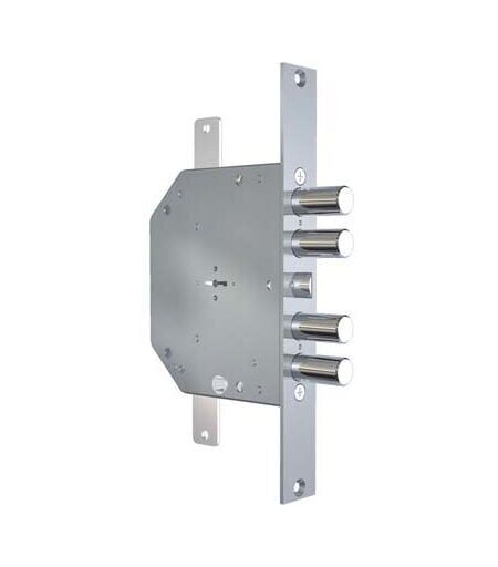 A doppia mappa. Con chiavi a sistema brevettato MXR PLUS. Scrocco reversibile, azionabile da chiave o maniglia. Chiusura triplice con catenaccio a 4 ... A doppia mappa. Con chiavi a sistema brevettato MXR PLUS. Scrocco reversibile, azionabile da chiave o maniglia. Chiusura triplice con catenaccio a 4 pistoni e 4 mandate, corsa Mm. 38, e predisposizione per chiusura aste, corsa Mm. 19. Quadro maniglia Mm. 8, interasse Mm. 72. Frontale con bordo quadro da Mm. 35x294. Scatola Mm. 130x164. In acciaio zincato. In dotazione: 3 chiavi, 1 chiave da cantiere, carta di proprietà, 1 bocchetta e viti di montaggio. ...
