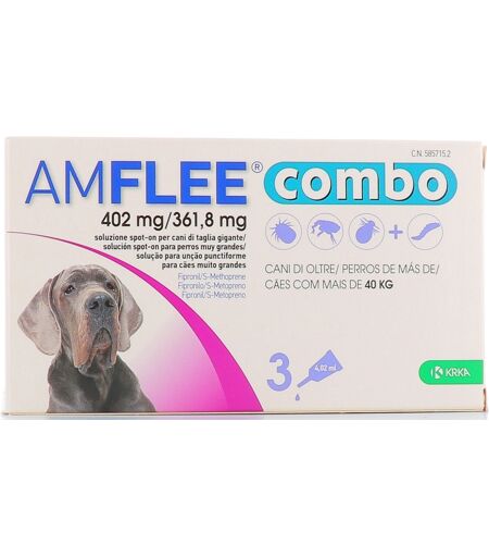 Krka Farmaceutici Milano Srl Amflee Combo Spot-On Soluzione per Cani 3 Pipette da 4,02ml Oltre i 40kg - Antiparassitario per Cani Grandi, Protezione Contro le Pulci e le Zecche