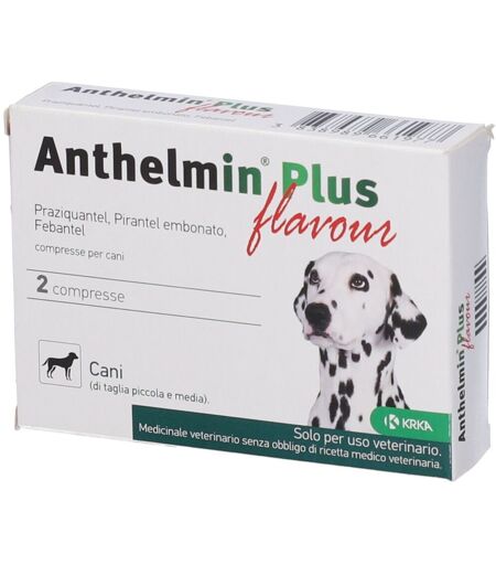 Codice Aic: 104844030Anthelmin Plus Flavour 2 compresse divisibili 50 mg + 144 mg + 150 mg caniOgni compressa contiene: praziquantel 50 mg, pirantel embonato 144 mg, febantel 150 mg.INDICAZIONEPer il trattamento di infestazioni miste dovute ai seguenti vermi tondi e vermi piatti nei cani adulti e cuccioli. Nematodi. Ascaridi: Toxocara canis, Toxascaris leonina (forme tarde immature e forme mature). Vermi uncinati: Uncinaria stenocephala, Ancylostoma caninum (adulti). Cestodi. Vermi piatti: Taenia spp., Dipylidium caninum.CONTROINDICAZIONINon usare in concomitanza con composti della piperazina. Non superare la dose specificata durante il trattamento di cagne in gravidanza. Non utilizzare in animali con nota ipersensibilita' al principio attivo o ad uno qualsiasi degli eccipienti. Da non usare nei cani di eta' inferiore alle 2 settimane e/o di peso inferiore ai 2 kg.PRECAUZIONI D´IMPIEGOLe pulci fungono da organismi ospite intermedi per un tipo comune di vermi tondi - Dipylidium caninum . Le infestazioni da vermi cilindrici si ripresentano con certezza a meno che non venga intrapreso un controllo degli organismi ospite intermedi quali pulci, topi, ecc. Si puo' sviluppare resistenza dei parassiti a qualsiasi particolare classe di antielmintici dopo un uso frequente e ripetuto di un antielmintico di quella classe. Le parti di compresse non utilizzate devono essere eliminate. Precauzioni speciali per chi somministra il medicinale veterinario agli animali: nell'interesse delle norme igieniche, chi somministra la compressa direttamente al cane o aggiungendola al cibo del cane deve lavarsi le mani. In caso di ingestione accidentale, cercare assistenza medica e mostrare il foglietto illustrativo al medico. Sovradosaggio: i benzimidazoli possiedono un ampio margine di sicurezza. Il pirantel non e' assorbito per via sistemica in nessuna quantita'. Anche il praziquantel ha un ampio margine di sicurezza, fino a 5 volte la dose raccomandata.INTERAZIONINon usare in concomitanza con piperazina poiche' gli effetti antielmintici del pirantel e della piperazina (utilizzata in molti prodotti vermifughi) possono contrapporsi l'uno con l'altro. L'uso concomitante con altri composti colinergici puo' portare a tossicita'.AVVERTENZE SPECIALIConsultare un medico veterinario prima di trattare animali in gravidanza per i vermi tondi. Le compresse possono essere usate durante l'allattamento. Non usare nelle cagne durante i primi due trimestri di gravidanza.EFFETTI INDESIDERATIIn casi molto rari in alcuni cuccioli possono manifestarsi feci molli, diarrea e/o vomito passeggeri. La frequenza delle reazioni avverse e' definita usando le seguenti convenzioni: - molto comuni (piu' di 1 animale su 10 mostra reazioni avverse durante il corso di un trattamento) - comuni (piu' di 1 ma meno di 10 animali su 100 animali) - non comuni (piu' di 1 ma meno di 10 animali su 1.000 animali) - rare (piu' di 1 ma meno di 10 animali su 10.000 animali) - molto rare (meno di 1 animale su 10.000... ...