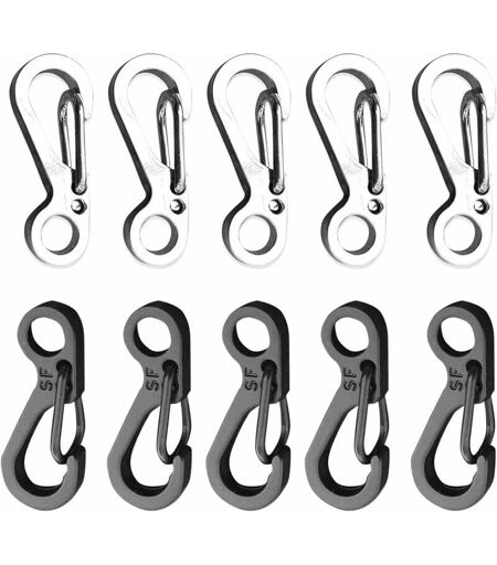 Mini Moschettone Sf (Nero, Argento) - Mini Moschettone - Con Fibbia a Molla - Per Campeggio - Anello a Clip - Leggero - Piccolo Moschettone - Clip