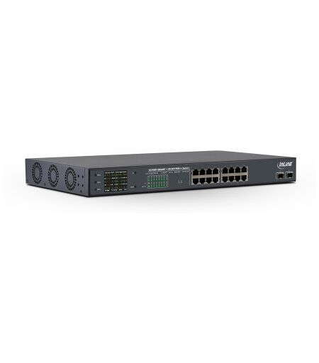 InLine PoE++ Gigabit Network Switch 16 porte, 1Gb/s, 2xSFP, 19" (incl. staffe), Gigabit Ethernet (10/100/1000), Supporto Power over Ethernet (PoE), Montaggio rack, 1U ...