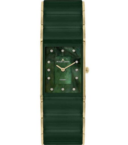 Orologio Da Donna Di Jacques Lemans Della Collezione Dublin 1-1940. Orologio Con Cassa Quadrata In Acciaio Inossidabile Massiccio Ip-Oro, Diametro Cassa: 24x28mm. Orologio Con Indicazione Analogica Con Indici Fatto Di Cristalli, Quadrante In Madre Perla ...