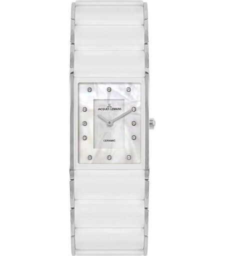Orologio Da Donna Di Jacques Lemans Della Collezione Dublin 1-1940. Orologio Con Cassa Quadrata In Acciaio Inossidabile Massiccio, Diametro Cassa: 24x28mm. Orologio Con Indicazione Analogica Con Indici Fatto Di Cristalli, Quadrante In Madre Perla E Con ...