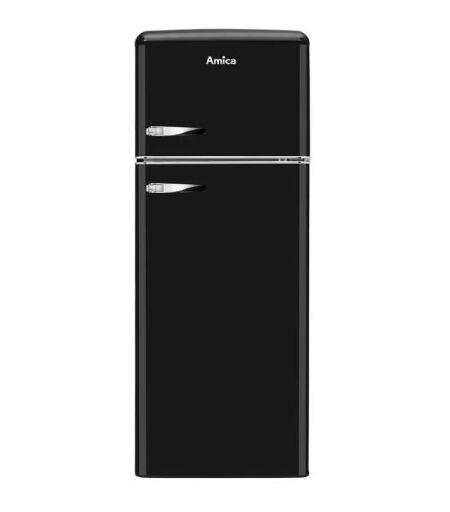 Combinazione frigo-congelatore retrò Amica KGC 15634 S, larghezza 55 cm, altezza 144 cm, 206 L, sbrinamento automatico, FrostControl, 3 ripiani, nero lucido ...