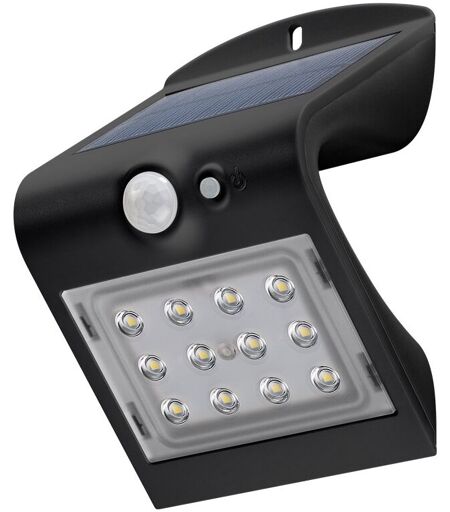 Goobay Applique da parete solare a led con sensore di movimento, 1,5 w, nero, soluzione di illuminazione bianca neutra per ingressi di case, carport e scale.