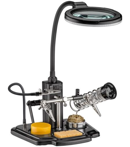L'artigianato incontra la precisione. La lampada d'ingrandimento fa risaltare ogni dettaglio, per quanto sottile. I morsetti a coccodrillo fissano saldamente il pezzo da lavorare e lasciano le mani libere per lavorare con precisione, rendendo il lavoro manuale preciso ancora più facile e privo di errori. ...