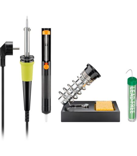 Fixpoint Set di saldatura di 4 pezzi, 30 w, con saldatore, supporto per saldatore, pompa dissaldante e saldatore.