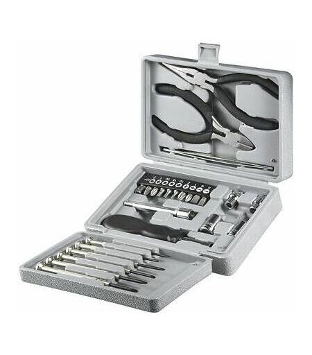 Con il set di attrezzi, tutti i cacciaviti e le pinze essenziali sono sempre a portata di mano. La pratica valigetta può essere riposta ovunque ed è il compagno ideale in viaggio, in campeggio o in vacanza. ...