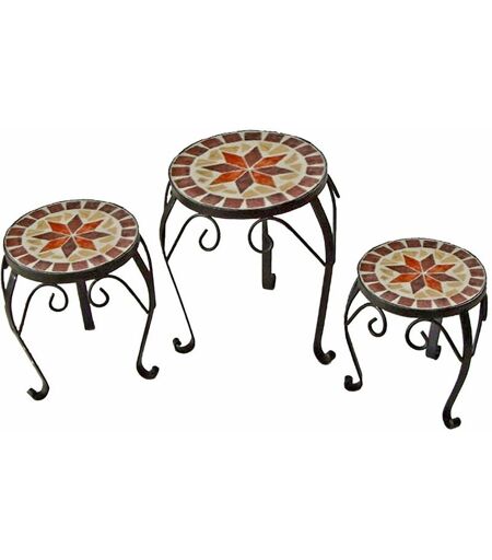 HARMS Sgabello per fiori Tavolino per fiori Tavolino da giardino, design a mosaico varie dimensioni, set da 3