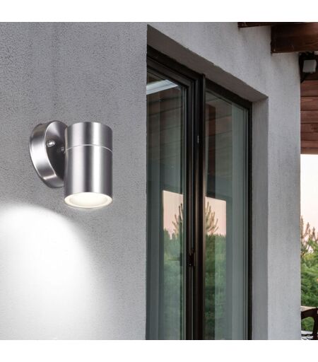 Descrizione Lampada da parete in acciaio inossidabile per uso esterno Ottima fattura, aspetto elegante e finitura nobile: queste sono le caratteristiche di questa lampada di design. Indipendentemente dal fatto che si tratti di un balcone o di una terrazza, questo faretto in basso fa una bella figura ovunque L'apparecchio è progettato secondo la classe di protezione IP44 ed è realizzato in acciaio inossidabile e vetro temprato. Questo lo rende resistente alla polvere e agli spruzzi d'acqua e quindi particolarmente adatto per l'uso all'aperto. Per illuminare in modo ottimale la posizione selezionata, nell'apparecchio è possibile utilizzare una lampada con attacco GU10 e una potenza massima di 35 watt. Das La sorgente luminosa non è inclusa nella consegna. Dettagli lampada • Tipo di lampada: lampada da parete • materiale: acciaio inossidabile • colore: argento• paralume: vetro temperato • downlight • protezione classe: IP44 • Diametro x altezza x profondità in cm: 6 x 11 x 9,2 • attacco: ...