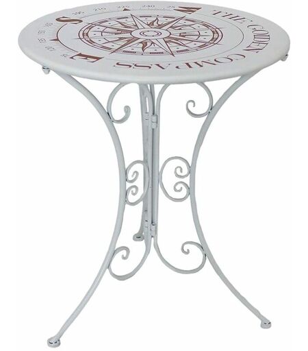 HARMS Tavolino da giardino tavolino in ferro tavolino da balcone piccolo tondo, bianco, design bussola, DxH 60x70 cm