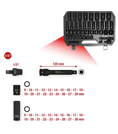 KS Tools 515.0065, Set di bussole, 1/2", 40 testina/e, Acciaio al cromo-molibdeno, ISO 1174, DIN 3129, ISO 2725-2, DIN 3121, 8 kg ...