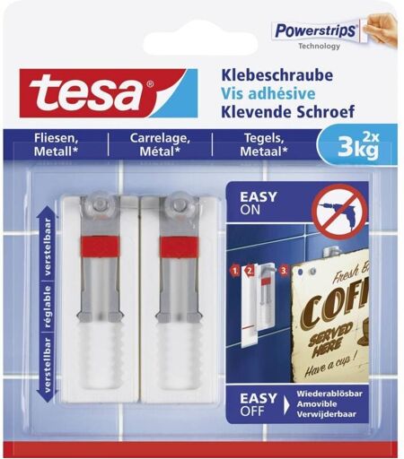 Tesa - 77765 Vite adesiva regolabile Bianco Contenuto: 2 pz.