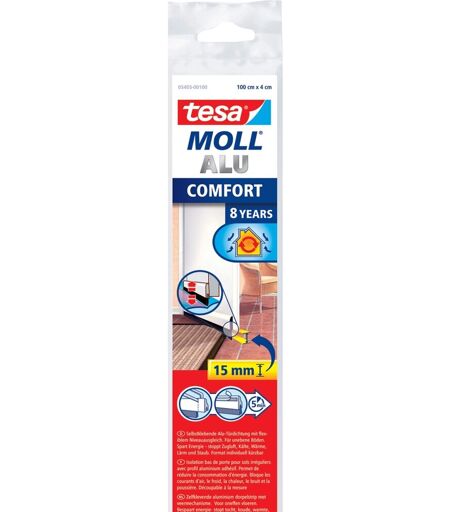 Asta sottoporta Tesamoll autoadesiva protegge la vostra casa da correnti d`aria, freddo, polvere e rumore. Dispone di setole in nylon sospese per un isolamento perfetto anche su piastrelle, mattonelle o altri pavimenti non uniformi. Si può fissare semplicemente alla porta senza viti né chiodi. Dimensioni: 100 cm x 4 cm ideale per una larghezza spifferi fino a 15 mm. Durata: 8 anni ...