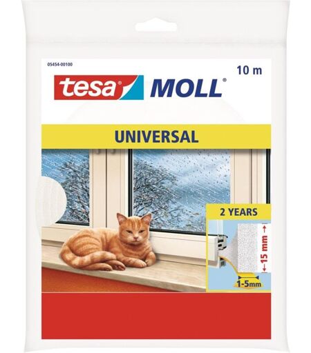 Tesa - Moll Standard I-Profil - Guarnizione Adesiva in Schiuma per L'Isolamento Termico di Finestre e Porte - Bianco, 10 m x 15 mm x 4 mm