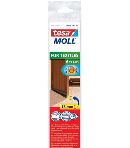 Paraspifferi a Spazzola per Tessuti tesamoll Il paraspifferi a spazzola tesamoll è stato appositamente progettato per isolare stanze rivestite con tappeti, moquette e altri tessuti, anche a pelo lungo. Una volta montato, impedisce la formazione di correnti d'aria che spesso scorrono attraverso le ampie fessure sotto le porte. Ciò migliora l'efficienza energetica dell'intera casa, facendo risparmiare sulla bolletta del riscaldamento e mantenendo gli ambienti caldi e confortevoli. La guarnizione in gomma bianca si attacca grazie alla tecnologia adesiva tesa, evitando di dover forare le porte con viti o chiodi, e può essere tagliata per adattarla alla misura della porta. La spazzola nera in nylon è dotata di setole extra lunghe e riesce a coprire spazi fino a 15 mm tra l'anta della porta e il pavimento. Il paraspifferi è resistente ai raggi UV e all'abrasione, e garantisce un isolamento efficace per almeno 6 anni. tesa - Più di un semplice nastro adesivo tesa è uno dei principali ...