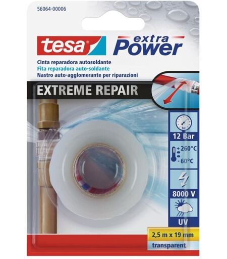 Nastro per Riparazioni Estreme tesa Extra Power Extreme Repair Cavi elettrici e tubature sono costantemente soggetti a usura e danneggiamenti, diventando spesso pericolosi sia per le persone che per le proprietà. Grazie al nastro per riparazioni tesa Extreme Repair avrete sempre a disposizione un prodotto versatile e multiuso per effettuare riparazioni estreme, minimizzando questi pericoli. Extreme Repair è un nastro isolante non conduttivo, resistente all'elettricità fino a 8000 V, quindi adatto per rivestire cavi scoperti, pizzicati o tagliati, riparando così l'alimentazione danneggiata di elettrodomestici come tosaerba, macchine per il caffè, phon e tante altre apparecchiature. Essendo poi impermeabile e resistente alla pressione fino a 12 bar, non teme le superfici bagnate, può essere utilizzato per sigillare perdite d'acqua su tubazioni interne, lavatrici e lavastoviglie e funziona anche sott'acqua. Inoltre, può sopportare temperature estreme tra i -60°C e i +260°C, e ai raggi ...