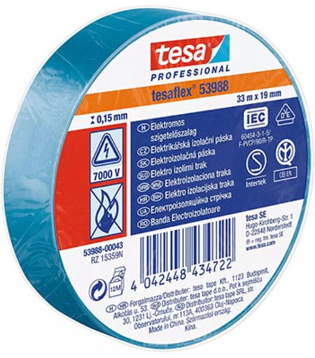 Tesa - Pacchetto. 10 rotoli nastro isolante blu 19mm x20mt