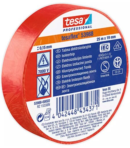 Tesa Pacchetto. 10 rotoli nastro isolante rosso 19mm x20mt