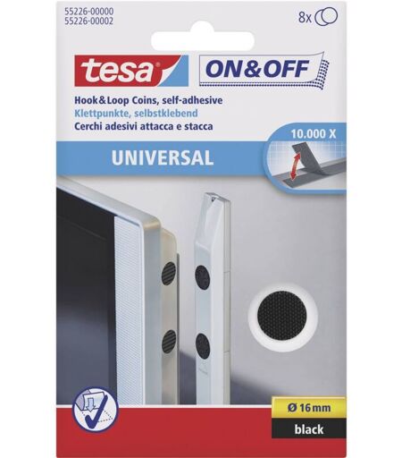 Tesa - Punti a strappo da incollare Lato morbido e lato rigido (ø) 16 mm Nero On & Off 55226-00-01 8 Paia