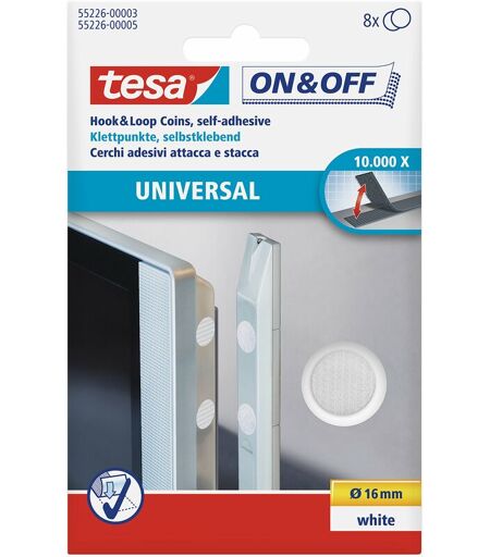 Tesa - Punti a strappo da incollare Lato morbido e lato rigido (ø) 16 mm Bianco On & Off 55226-03-00 8 Paia