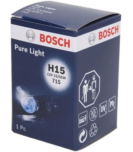 Bosch Lampada alogena H15 Pure Light 12V, 55/15W, 1 Pezzo