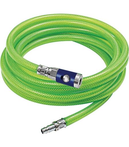 Tubo standard flessibile, resistente alla pressione e all'usura · Raccordo di sicurezza · elevata sicurezza grazie al colore segnaletico – verde brillante · assemblato con raccordo di sicurezza a pulsante NW 7,4 e raccordo a innesto in acciaio zincato ...