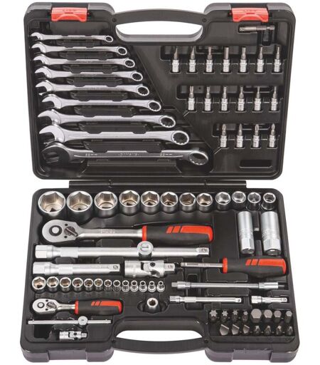 Descrizione Esecuzione: Raccordi e utensili di manovra secondo DIN 3122 / 3123; chiavi a bussola secondo DIN 3124. Quadri interni / esterni secondo DIN 3120. Tutti i componenti nelle custodie di plastica. Esecuzione economica. Materiale: Acciaio al cromo-vanadio, esecuzione cromata. Fornitura: 82 pezzi − 1/4; 1/2 pollice: 25 bussole 1/4, 1/2 pollice, esagonali 4 − 32 mm 1 prolunga 1/4 pollice esagonale su attacco quadro da 1/4 pollice 2 bussole per candele 1/2 pollice 16 e 21 mm 1 adattatore per bit 1/2 pollice per bit con attacco da 5/16 pollice 4 bit per Torx® TX40; TX45; TX50; TX55 4 bit per esagono interno 8 mm; 10 mm; 12 mm; 14 mm 3 bit per viti con intaglio 8 mm; 10 mm; 12 mm 2 bit per viti con impronta a croce Phillips PH3; PH4 2 bit per viti con impronta a croce Pozidriv PZ3; PZ4 2 cricchetti a sbloccaggio rapido 1/4 pollice e 1/2 pollice 1 impugnatura 1/4 pollice 1 impugnatura a T 1/4 pollice 2 snodi cardanici 1/4, 1/2 pollice 4 prolunghe da 1/4 e 1/2 pollice 50; 100; 125; 250 mm 1 prolunga flessibile 1/4 pollice 150 mm 1 testina scorrevole 1/2 pollice 4 bussole 1/4 pollice per esagono interno 3 − 6 mm 6 bussole 1/4 pollice per Torx® TX8; TX10; TX15; TX20; TX25; TX30 3 bussole 1/4 pollice per viti con intaglio 4; 5,5; 7 mm 2 bussole 1/4 pollice per viti con impronta a croce Phillips PH1; PH2 2 bussole 1/4 pollice per viti con impronta a croce Pozidriv PZ1; PZ2 9 chiavi combinate 8 − 22 mm Riposte in: Valigetta di plastica (380×285×85 mm) Dati tecnici Imballaggio Astuccio in plastica Tipo di prodotto Chiave a bussola Campo apertura bussola esagonale, mm 4-32 Campo apertura chiave esagonale, mm 3-14 Quadro di manovra femmina, pollici 1/4 Quadro di manovra femmina, pollici_ 1/2 Profilo di manovra Pozidriv Profilo di manovra_ Cacciavite per viti con impronta a croce Phillips Profilo di manovra_ Intaglio Profilo di manovra_ Bussola con bocca esagonale Profilo di manovra_ con bocca esagonale Profilo di manovra_ Giraviti per viti con impronta Torx® Dimensione apertura metrica Numero pezzi 82 ...