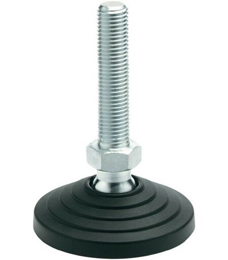con madre, con cuscinetto di gomma · i valori di capacità di carico statica indicati nella tabella sono valori indicativi, il cui superamento può provocare deformazione permanente o rottura della lastra di plastica · Design: Termoplastica in plastica per piedi (poliammide PA), fibra di vetro rinforzata, nera, opaca, resistente alla temperatura fino a 100 °C · Acciaio mandrino regolabile zincato, passivato blu · Classe di resistenza 5.8 · Dado esagonale ISO 4032: zincato in acciaio, passivato blu · Cuscinetto in gomma (NBR): 70 Shore A, nero Altre caratteristiche tecniche: · l3: 24mm · l2: 33 mm · l1: 98mm · d1: 60mm · d2: M 10mm ...