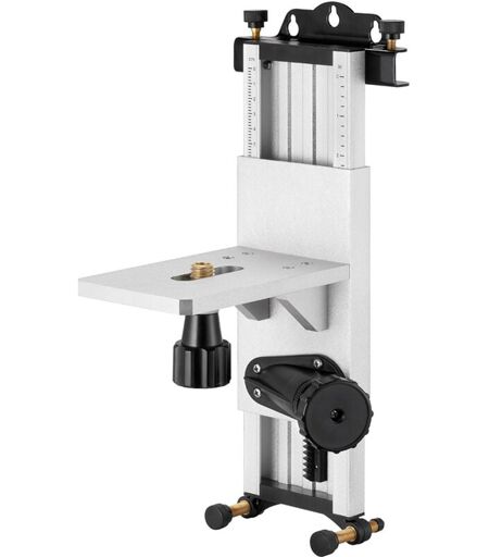 WH 2 è una staffa di montaggio rinforzata per appendere strumenti laser a pareti e profili a parete. Montaggio della staffa su una parete o su un profilo a controsoffitto. Ampia piattaforma in alluminio da 150 x 95 mm. Due viti per il pre-livellamento della staffa. Vite di montaggio standard da 5/8" per strumento Regolazione precisa dell'altezza con una manopola grande. Intervallo di movimento del tavolino: 100 mm. Spaziatura di montaggio di 100 mm: consente il montaggio di tutti i laser lineari e rotazionali geo-FENNEL. Le divisioni in centimetri e pollici facilitano l'impostazione dello strumento all'altezza corretta. ...