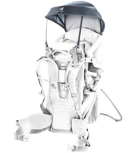 Il tettuccio flessibile e resistente protegge dal sole e può essere assemblato velocemente su tutti gli zaini porta bimbo Deuter provvisti di fibbie. Il tettuccio parasole protegge il bambino dai raggi UV e crea un’ombra piacevole. Può essere facilmente riposto grazie alla struttura flessibile. Adatto per Kid Comfort Active, Kid Comfort Active SL, Kid Comfort. ...