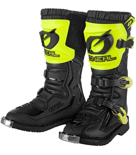 Stivali Moto Cross Enduro Bambino O'Neal RIDER PRO Youth Nero GialloScehda tecnica:Tomaia in microfibraMateriale Air-Mesh traspiranteStruttura della suola resistente e cucitaFibbia a chiusura rapida facilmente regolabileProtezione dita e suole in metalloRinforzo sul talloneSuola interna estraibile ...
