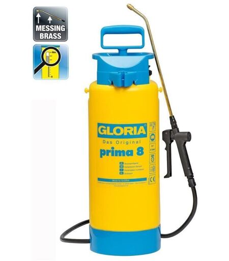 Gloria prima 8 N° d'article 000099.0000 Pulvérisateur à pression avec extra grande capacité Capacité 8,0 l Drainage des résidus pratique Socle pour une stabilité sûre Lance en laiton et buse à cône creux en laiton réglable Pompe de pression performante Bande indicatrice de niveau transparente pour le contrôle du niveau de remplissage Information sur le produit Le pulvérisateur à pression prima 8 offre un volume de réservoir de 8 litres et une pression maximale de 3 bars et convient ainsi parfaitement bien à une utilisation pour la protection des plantes et l'entretien des plantes dans les grands jardins. Équipé d'un raccord de tuyau au fond du réservoir, le liquide à pulvériser est utilisé jusqu'à la dernière goutte. L'évacuation fastidieuse des résidus de liquides dans le réservoir appartient au passé. Grâce à un manomètre à piston avec soupape de sécurité intégrée ainsi qu'à une lance en laiton et une buse à cône creux, le pulvérisateur prima 8 offre un travail en toute sécurité ...
