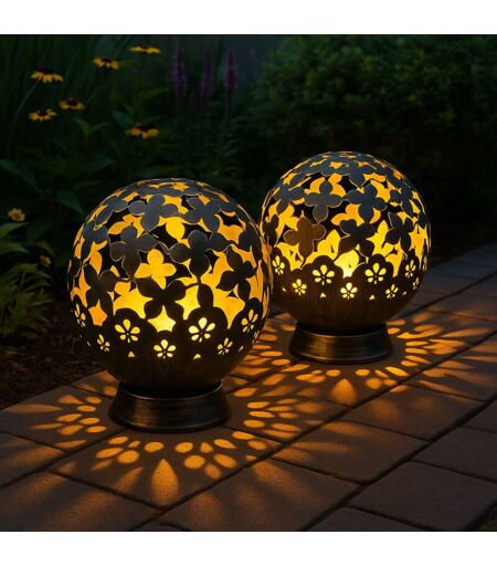 NINO Lampade solari a luce solare per la decorazione del balcone esterno decorazione del giardino metallo esterno, design floreale farfalla, nero, led,
