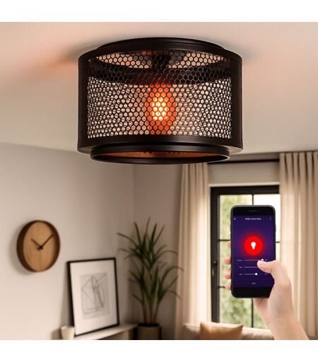 Descrizione Una plafoniera con griglia come paralume per momenti di luce davvero speciali. Il paralume in metallo nero ha un motivo a griglia attraverso il quale è possibile vedere l'interno placcato oro del paralume. Questo design significa che ogni volta che accendi la luce, la luce viene riflessa e rimbalzata attraverso i fori in modi nuovi. Non esistono due momenti uguali, una danza di luci, così da vedere sempre nuovi momenti. Con un'altezza di 34 cm e un diametro del paralume di 40 cm, la lampada è perfetta per il vostro soggiorno/sala da pranzo. Grazie alla lampadina inclusa, puoi gestire facilmente la lampada dal divano utilizzando l'app o il controllo vocale. Puoi utilizzare l'app per impostare il timer con diversi giorni della settimana e orari, nonché diversi programmi di illuminazione. Nella consegna è inclusa una sorgente luminosa LED Smart RGB. Lampada dettagli • Tipo di lampada: lampada a sospensione • Materiale: metallo • Colore: nero, oro • Grado di protezione: IP20 • ...
