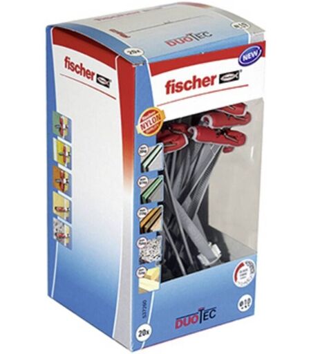 Dettagli tecnici Dimensione del prodotto, lunghezza 50 mm Dimensione, Ø 10 mm DUOTEC 10 LD Il poliammide tassello a DUOTEC fischer per un'elevata resistenza alla trazione e carichi trasversale grazie ai 2 componenti. Montaggio semplice con diametro minimo del foro di 10 mm ed elemento inclinabile corto anche in spazi cavi stretti e isolati. Montaggio preliminare semplice, il tassello non rientra nel foro anche senza vite. Nessun taglio e quindi indebolimento del cartongesso. L'elemento inclinabile si apre automaticamente dietro al pannello conferendogli la capacità di carico. Grazie all'inserimento flessibile delle viti in acciaio inossidabile, è possibile utilizzare il tassello a farfalla con le viti per legno e truciolato oppure aste filettate e ganci con filettature metriche con controdado. Nelle corrispondenze dei fori nei materiali da costruzione pieni funziona come un tassello a espansione. Testo tradotto automaticamente. Requisiti di sistema null ...