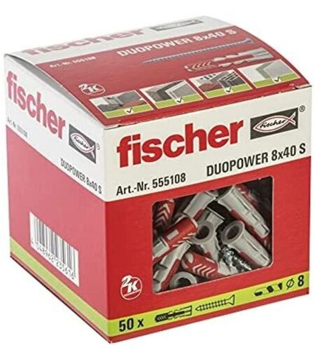 Spina fischer duopower 8x40s + vite 5,5x50mm scatola 50un 555108 Spina fischer duopower 8x40s + vite 5,5x50mm scatola 50pz EAN: 4048962235616 ...