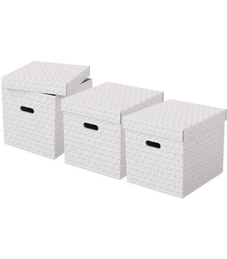 Esselte Set di 3 Contenitori Cubici Grandi con Coperchio in Cartone Riciclato e Riciclabile al 100%, Ottimali per lo Stoccaggio e l'Archiviazione,