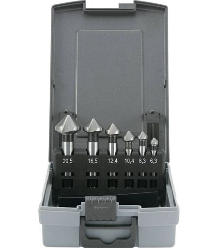 TOOLCRAFT - 1614138 Kit svasatori conici 6 parti 6.3 mm, 8.3 mm, 10.4 mm, 12.4 mm, 16.5 mm, 20.5 mm hss Alberino cilindri