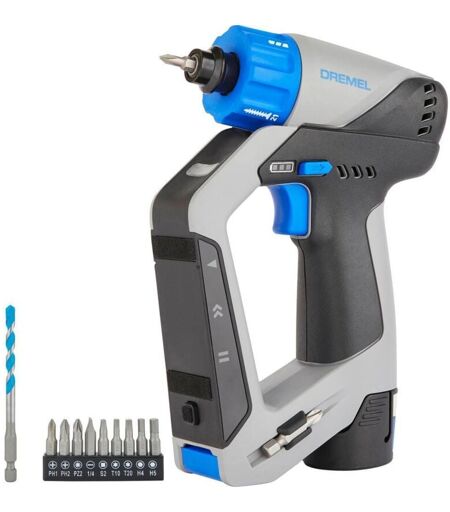 Dremel Trapano avvitatore a batteria 3 in 1 con laser di linea e localizzatore, DD12V-S1, senza spazzole, batteria da 12V 2,0Ah + caricabatterie
