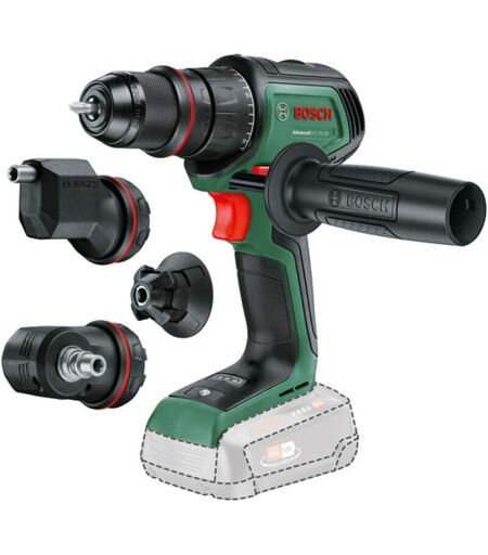 Trapano avvitatore a batteria AdvancedDrill 18V-80 QuickSnap. Con tutta la potenza: massima performance per forare e avvitare in modo versatile. Foratura e avvitatura potenti con un coppia massima di 78 Nm e regolazione continua della velocità. Trapano avvitatore durevole grazie al motore senza spazzole e al mandrino in metallo da 13 mm intercambiabile. Interfaccia QuickSnap per il cappuccio magnetico o per gli accessori aggiuntivi per raggiungere punti stretti. Lavoro sicuro e preciso con maggiore controllo grazie alla maniglia ausiliaria. Ideale per forare e avvitare legno, metallo e plastica. Tecnologia Syneon per potenza ottimale e massima durata della batteria. Compatibile con batteria Bosch 18V POWER FOR ALL. Mandrino in metallo intercambiabile. Accessorio angolare. Accessorio oscillante. Cappuccio magnetico. Utensile per avvitare. Maniglia ausiliaria. Confezione in cartone. ...