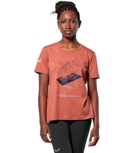 Salewa X-Alps W T-shirt da donna che celebra l'iconica avventura alpina di X-Alps, gara di hike & fly in cui gli atleti camminano, corrono, scalano e volano attraverso le Alpi percorrendo 1,250 kilometri in 12 giorni, fresca e traspirante con grafica dedicata esclusiva. cotone soffice e traspirante unito a fibre naturali di Tencel™ lyocell di origine vegetale che migliorano la regolazione dell'umidità e le prestazioni anti-odore girocollo grafica esclusiva speciale 3D del turnpoint dell'X-Alps alle Tre Cime in Dolomiti ...