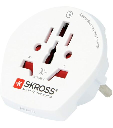 Skross 1.500211-E World to Europe Adattatore da Viaggio Mondo per Europa - Tensione e Potenza: 100V - 1600W / 250V - 4000W - Protezione Antiscossa