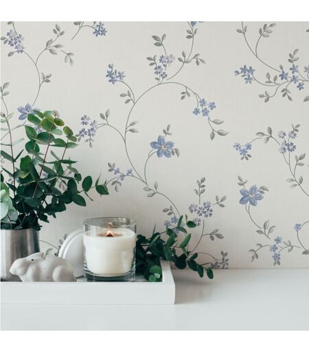 A.S. Création Carta da parati in tessuto non tessuto - Carta parati floreale con motivo a fiore in crema, grigio e blu - Carta da parati per diverse stanze - Carta da parati in 10,05 m x 0,53 m ...