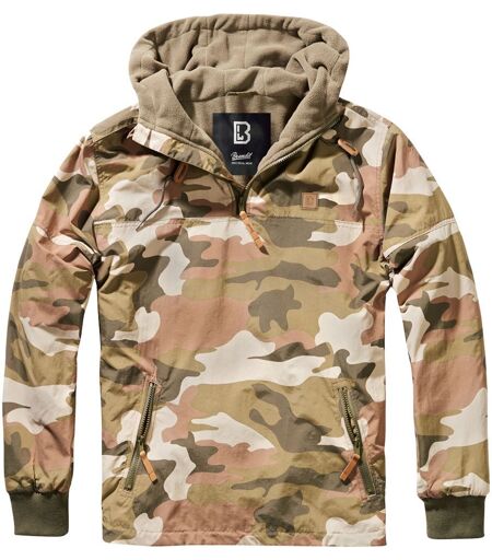 CARATTERISTICHE:Fodera in pile, antivento e idrorepellente, cerniera laterale extra lunga, tasche con cerniera, polsini a coste, cappuccio con coulisse, toppa in pelle Brandit sul petto.COMPOSIZIONE:100% poliestere, fodera:100% poliestere, costina:80% poliacrilico, 20% poliestere, nastro elastico:L'80% di elastodiene, il 20% di poliestere contiene parti non tessili di origine animale. ...
